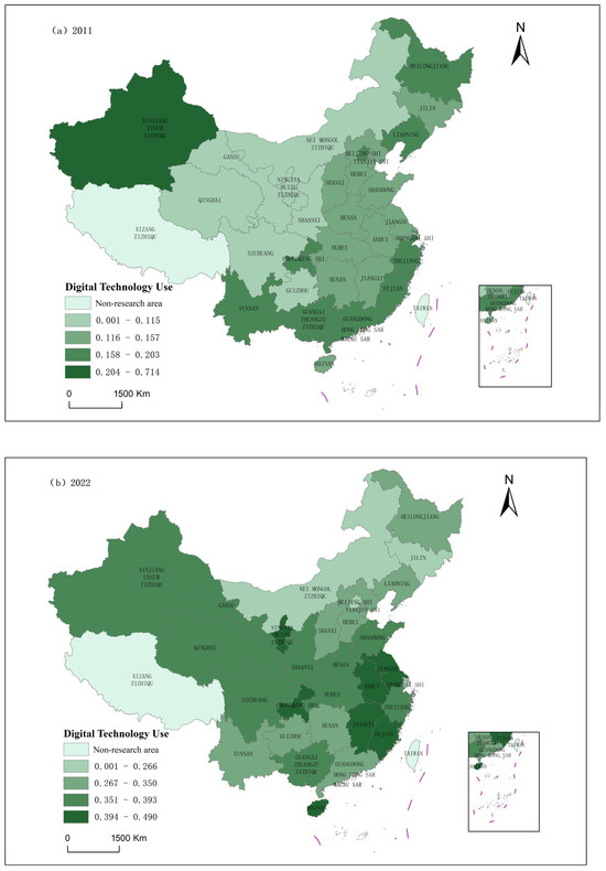Comprehensive index of digital technology usage development in China’s provinces for 2011 and 2022.