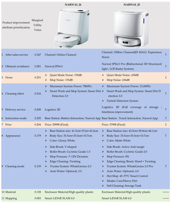 Finally, based on the marginal utility function, the marginal utility of each product improvement attribute is calculated using the current attribute performance level. Attributes are then prioritized according to their marginal utility values, where attributes with higher marginal utility indicate that their improvement can lead to a greater increase in user satisfaction and should, therefore, be prioritized for improvement.