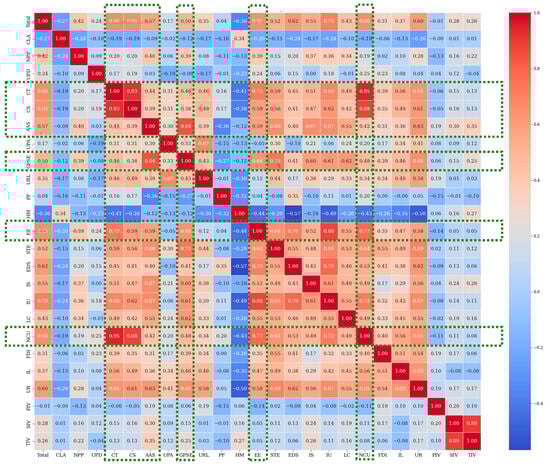 The Social and Economic dimension facilitates urban innovation cooperation by optimizing industrial structures, driving consumer markets, and fostering a socio-cultural atmosphere [64,65]. Governmental institutions play a pivotal role through policies such as fiscal incentives (e.g., R&D subsidies, tax breaks), infrastructure investments, and intellectual property protection. Among these, FDI and GPSE focus more on policy and institutional aspects [19]; IS, PIV, SIV, and TIV serve as key indicators reflecting the industrial structure; LC represents the urban cultural atmosphere [20]; and IU is used to indicate the level of urban informatization [66].