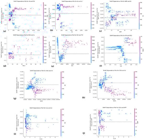 As mentioned earlier, XGBoost can compute the optimal solution for the model and prevent overfitting, even when dealing with high-dimensional and complex data [34]. In contrast, LR assumes a linear relationship between variables, which is often unrealistic in the context of urban innovation cooperation, where numerous factors interact in complex and nonlinear ways. SVR requires the careful selection of kernel functions, is sensitive to the scale of input features, and necessitates extensive preprocessing [81]. Although RF can handle nonlinear relationships to some extent, it may overfit if the number of trees is not properly adjusted [82]. XGBoost and GBDT share similarities in the boosting method, but XGBoost introduces several improvements [83]. XGBoost implements parallel processing to accelerate the calculation speed and can handle missing values internally, making it more efficient in practice. In comparison with the other several algorithms (Table 3), the XGBoost model exhibited the lowest MSE (0.633), RMSE (0.790), and MAE (0.638), as well as the highest R2 (0.855), suggesting that the XGBoost model demonstrated greater scientific validity in exploring this dataset [84]. Meanwhile, the integration of XGBoost and SHAP yielded favorable results and could effectively serve the subsequent prediction of factor contribution degrees [74].