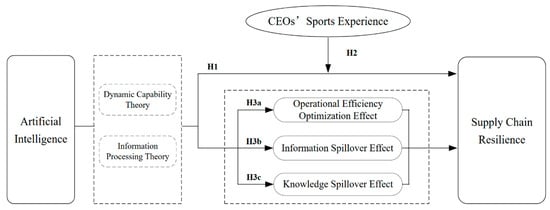 The combination of AI and supply chain management represents a strategic transformation that brings opportunities as well as challenges, which inevitably require strong involvement and support from the CEO. The upper echelons theory also suggests that managerial traits influence the strategic choices of an organization [27], while managers’ perceptions are influenced by factors such as their educational background, professional experience, and values, thus showing individual differences [75]. In complex and changing business environments, successful leaders need to build confidence in high-pressure situations and manage change based on continuous competition. These behavioral traits share similarities with top athletes [28]. Sports experiences can enhance the construction of CEOs’ psychological capital through challenging physical limit states, which in turn influences their attitudes toward AI. This paper further focuses on the moderating role that CEOs’ sports experience plays in the process of firms utilizing AI to shape SCR.