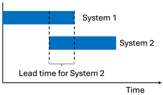 The development of System 2, depending on the development of Systems 1, can start with a lead time, during which both systems are being developed.
