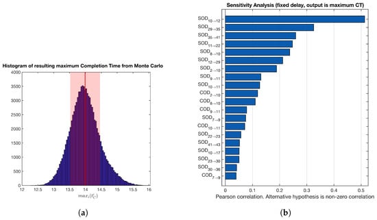 In the initial formulation of SDDA, Equation (6) shows that the beginning time of the development of a successor system j is the average of the times resulting from each dependency of this system on input systems. With this formulation, if there is a large spread among the completion times of the predecessors of j, this choice could cause too large a lead time, with a potential consequent waste of resources and/or increase in cost. To avoid this effect, a more conservative model can be used. In this formulation, called SDDAmax, the beginning time is the maximum (instead than the average) of the beginning times due to each dependency. In general, this results in less ability to absorb delay, in return for a reduced risk of “wrong” decisions being made in terms of too large lead times. In the conservative model, Equation (9) is used instead of Equation (6):