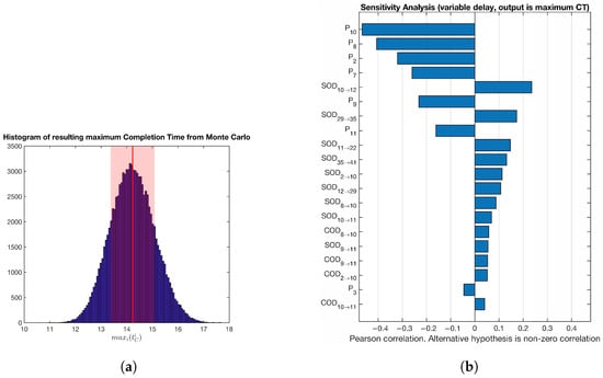 PERT and CPM are powerful and well-established technologies. However, they still present some limitation when addressing specific challenges associated with complex systems, and particularly Systems of Systems. A literature survey in relevant areas in project management, decision support, intelligent and simulation-based scheduling, as well as delay propagation, shows that authors recognize the need for lead times accounting for possible partial dependencies [,] and have been advocating for intelligent scheduling and rescheduling for a long time [,,]. The most common approach is to use static values for lead times [] and reactive rescheduling, based on the current behavior of the systems under development, in terms of delays, rather than the expected behavior. Boehm et al. [] surveyed various estimation methods for development schedules in software engineering. The common approach in this case is to compress the schedule by allocating an adequate number of workers to each activity. Some authors also underline the importance of modeling entire networks of projects when known developmental dependencies exist and when dealing with constituent systems in an SoS. The suggested approach in this case is to use traditional PERT/CPM methodology, using expert data for estimation, augmented by on-demand scheduling and the improved visibility of work-in-progress and system status []. Some authors propose methods for simulation-based scheduling [,]. These methods have the advantage of optimizing the scheduling and can include the allocation of resources, at the cost of not being viable for the identification of good and bad scheduling patterns and sources of risk. When projects become too complex for simple simulations, intelligent scheduling methods, based on fuzzy logic, Machine Learning (ML), or other search algorithms, can be used [,]. Some of these works also highlight the problems involved with uncertainty and large systems and suggest methodologies to estimate development times [,]. Krishnan, Eppinger, and Whitney propose a framework to model overlapping in a basic scenario, although without accounting for delays []. The model is based on the required exchange of information to maximize parallel development, and can be used as one of the main sources for SDDA parameters. The impact of delays in complex projects is often evaluated only qualitatively. Other models of delay propagation are specific to fields of application, for example airline flight scheduling [] and train scheduling [], which are characterized by clear, non-overlapping sequences of vehicles and centralized control. This kind of approach cannot model the independence of stakeholders that characterizes SoS. Regarding risk assessment, Willumsen et al. [] recognize the importance of the perceived value of risk assessment and mitigation, while Belvedere et al. [] identify misperceptions related to the wastefulness that occurs in projects. Wang et al. [] suggest using system dynamics to quantitatively evaluate the value of risk mitigation under uncertainties.