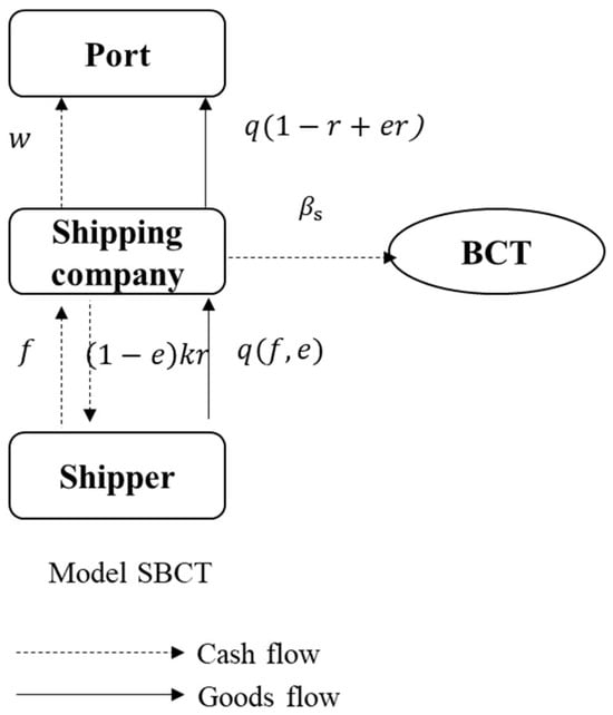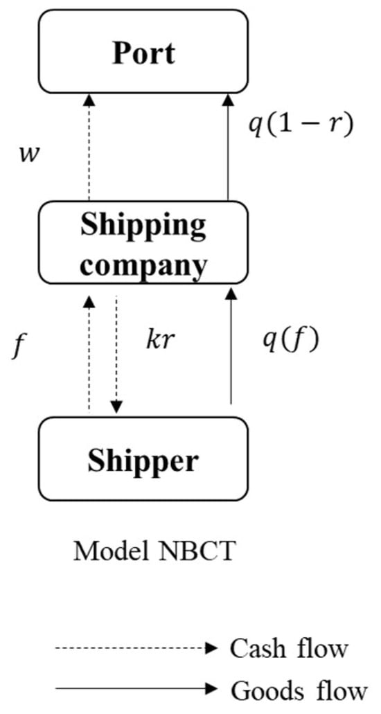 The first one is model NBCT, representing a traditional maritime supply chain where neither the port nor the shipping company invests in BCT. The structure of model NBCT is shown in Figure 2.