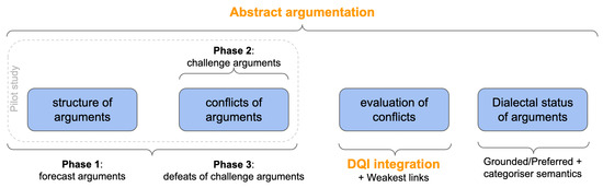 The multiphase deliberation system implemented in this research is inline with the Structured Dialogical Design (SDD) consensus-building process [67,68]. They both aim at consolidating varied viewpoints into a clear, analytical, and rational representation that can support strategic decision making and planning. Additionally, it is also aligned with the Issue-based Information System (IBIS), a particular argumentation-based approach to clarifying wicked problems that are difficult to solve due to the degree of inconsistency and incompleteness of the available information [69,70].