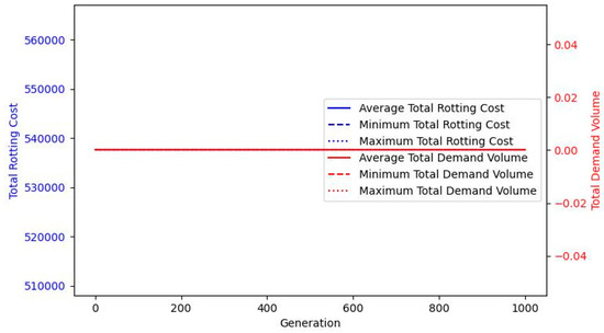 From a cost perspective, the NSGA-II solutions achieved demonstrable reductions in transportation, storage, and spoilage costs. This improvement can be attributed to the algorithm’s adaptive search mechanism, which iteratively refines solution candidates based on both dominance ranking and crowding distance. By effectively balancing multiple conflicting objectives (e.g., route length, demand fulfillment, and freshness constraints), NSGA-II prevented cost overruns often seen in classical methods that lack robust multi-objective search capabilities. Our findings reinforce NSGA-II’s viability in complex, real-world applications, where lower total costs and minimized waste translate into significant competitive advantages.