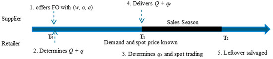 This strategy combines forward contracts, options, and the spot market, which is the focus of our study. The FOS procurement process is illustrated in Figure 1.