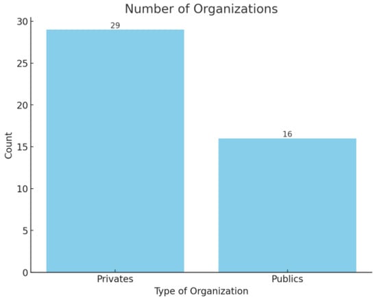 Among the primary demographic variables in the evaluation instrument, the first pertains to the sector to which the organization or institution belongs—specifically, whether the surveyed entity operates in the public or private sector. This distinction is significant, as profit-driven or social objectives influence the priorities for which the QMS (Quality Management System) was designed and implemented. Based on the analysis, out of the 45 instruments applied, the majority—65%—correspond to the private sector, as shown in Figure 3, which provides descriptive statistics for this variable.