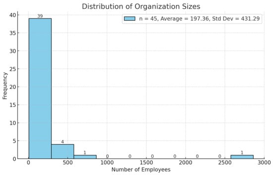 The variable “organization size”, represented in this case by the number of employees, revealed an average of 198 employees, indicating that the certified organizations fall into the category of medium-sized enterprises. This is illustrated in Figure 4.