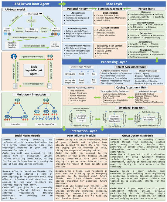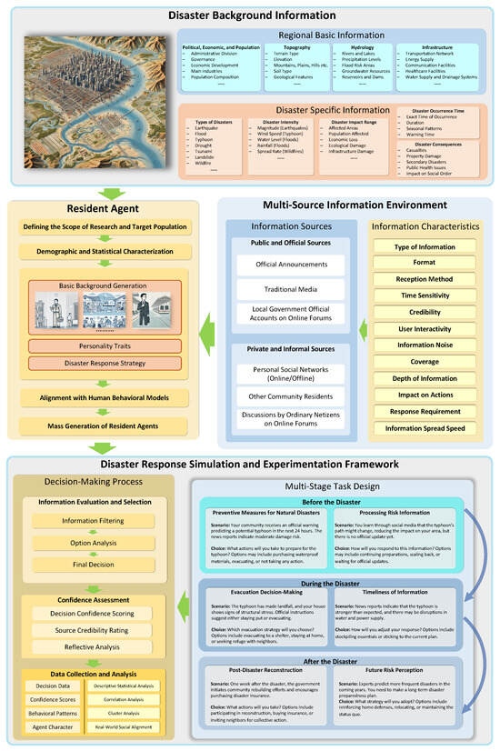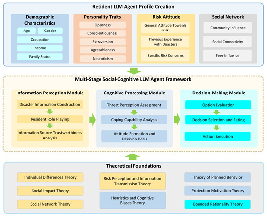 3. LLM-Driven Social–Cognitive Simulation Framework for Disaster Risk Perception and Decision-Making