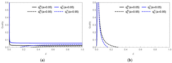 - The relationship between quality decisions and δ is jointly influenced by and μ. If and or if and , then ; otherwise, .