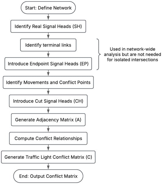 Our methodology for constructing the traffic light conflict matrix involves a systematic process that can be applied to both isolated intersections and large-scale road networks. The key steps include the following: