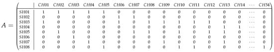 - A is the adjacency matrix of dimensions , where n is the number of real signal heads (SH) and m is the number of crossing signal heads (CH).