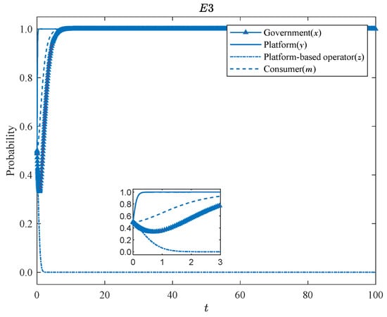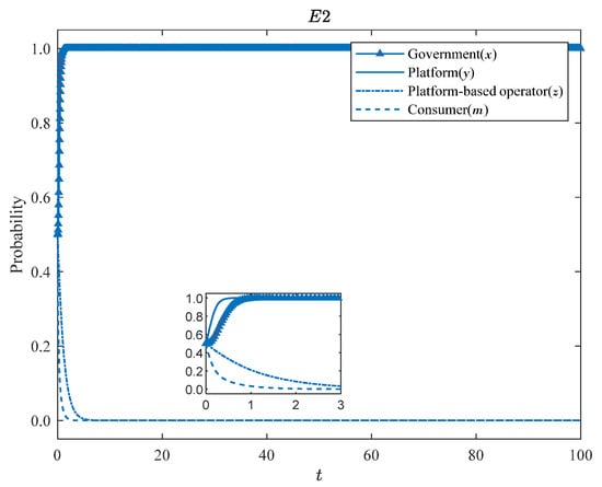 Corollary 2 indicates that the strategic choices of platforms, in-platform merchants, and consumers remain consistent with the conclusions drawn in Corollary 1; the government’s strategic selection follows a cost–benefit analysis framework, exhibiting a propensity to adopt strong intervention strategies when comparative analysis reveals that the total cost of strong intervention is low relative to the opportunity benefit.