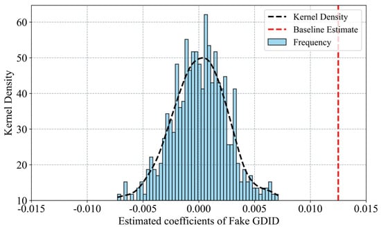 To address potential endogeneity concerns in our DID estimation, we implement several strategies. First, we conduct parallel trend tests to verify that treatment and control groups followed similar trajectories before policy implementation, thereby validating a key assumption of DID. Second, we perform placebo tests using randomly assigned ‘fake’ treatment statuses to ensure that our results are not driven by chance. Third, we control for other contemporaneous policies that might affect energy resilience, such as smart city initiatives and low-carbon city policies, to isolate the impact of green digital infrastructure. Fourth, we employ alternative estimation methods and variable constructions to verify the robustness of our findings. These comprehensive approaches collectively address endogeneity concerns and strengthen the validity of our causal inferences.