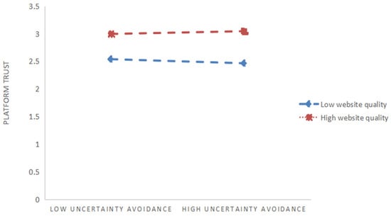 Website quality moderates the relationship between uncertainty avoidance and platform trust, such that strong website quality weakens the negative relationship.