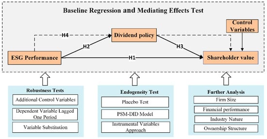 Figure 1 illustrates the research framework, highlighting the causal pathways through which ESG performance affects shareholder value via dividend policy. This visual model aids in understanding the dynamic effects and mediation processes explored in the study.