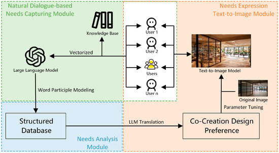 By effectively guiding the various design requirements of multiple stakeholders in the community and facilitating robust interaction among all parties, the Natural Dialogue-Based Needs Capturing Module not only ensures diversity in data collection—thus creating a solid data foundation for subsequent statistical analysis and generative design models—but also significantly enhances the efficiency of needs gathering and the convenience of participation. Supported by artificial intelligence tools, it promotes greater collaboration and co-creation in the design of public spaces. Breaking through the spatial and temporal limitations of traditional face-to-face meetings and designer-led needs-gathering markedly elevates residents’ engagement and the effectiveness of expressing their needs.