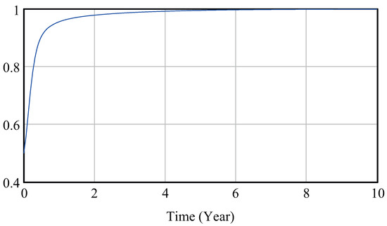 The change rate in AFEs’ probability of adopting the information sharing strategy is presented in Equation (19).
