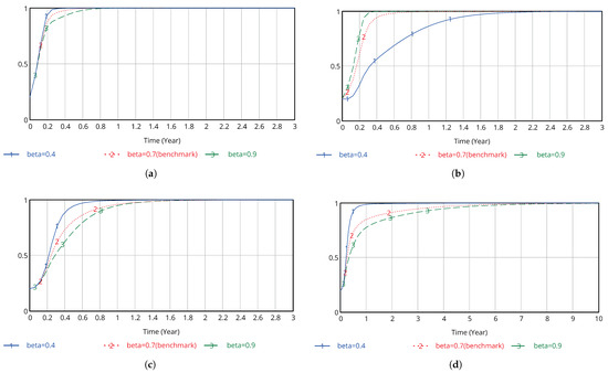 (6) To ensure long-term policy sustainability under fiscal constraints, this study proposes a diversified incentive pathway that evolves over time. In the early stage, fiscal subsidies are employed to stimulate the initial participation and activate the information collaboration mechanism. As the system begins to stabilize, the policy focus gradually shifts toward institutional instruments—such as tax relief, credit access, and preferential procurement—which help to reduce collaboration costs and maintain engagement. In the mature phase, market-oriented mechanisms are introduced, particularly platform-based revenue-sharing schemes that enable participants to derive value from information exchange and coordination.