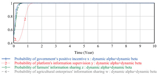 The change rate of the farmers’ probability of adopting the information sharing strategy is presented in Equation (14).
