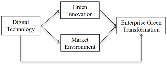 Simultaneously, the widespread application of digital technologies has sparked growing interest among scholars in understanding how digital technologies, particularly within the digital economy, contribute to the green transformation of the equipment manufacturing sector. Digital technologies are now recognized as key enablers of this sector’s green transformation, particularly in terms of technological innovation, management efficiency, and changes in production methods [2]. Research shows that these technologies, which are increasingly integrated into large-scale industrial ecosystems, reshape the industry’s structure and operations [20]. By overcoming the limitations of time and space, digital tools facilitate the shift from supply-driven to demand-driven production models, which, in turn, support green innovation initiatives within the sector [21]. Additionally, digital technologies foster collaboration among enterprises and key stakeholders, enabling better resource reconfiguration and advancing green technological developments [22]. Studies further demonstrate that digitalization can significantly enhance green innovation output, addressing the limitations and high costs that often hamper traditional green innovation efforts [23]. By utilizing conventional production factors more innovatively, digital tools help enterprises move up the value chain toward higher-value-added activities, which reduces carbon emissions and advances both green transformation and sustainable development through cost reduction and operational efficiency improvements [24]. Enterprise production and operations are becoming increasingly flexible, networked, and platform-based, which leads to lower energy consumption and reduced pollution. This transformation also drives the adoption of green production practices, such as renewable energy use and resource recycling, contributing to improved environmental performance. As a result, enterprises are receiving greater attention from environmentally conscious consumers and investors, who exert pressure on firms to strengthen environmental awareness and pursue green transformation initiatives [25].