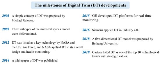 Digital Twin (DT) was first introduced by Grieves in 2003 [16] and has since gained significant attention in both industry and academia as a method for digitally understanding and transforming the world [17]. The concept was initially applied by NASA during the Apollo program. Figure 4 illustrates the evolution of DT.
