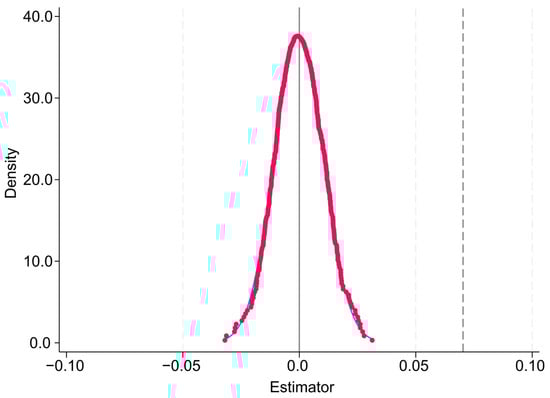 To verify the impact of HSR service on the provision of BPS, a progressive regression strategy was adopted in this study, and Table 4 reports the estimation results of model (3). Column (1) only reports the impact of HSR service on the provision of BPS without including control variables, and columns (2)–(7) sequentially include control variables that may affect the provision of BPS; all regressions control for unobserved regional and temporal characteristics by fixing the year and city effects, and robust standard errors are clustered at the city level. In all models with the gradual inclusion of control variables, the coefficient of Ln(Hsr + 1) is significantly positive at the 1% statistical level. Additionally, the gradual inclusion of control variables improves the model’s fit, effectively avoiding estimation errors caused by omitted variables. Column (7) shows that for every 1% increase in the HSR train frequency, the provision of BPS increases by 0.07. The above results indicate that the increase in the frequency of HSR service has a positive effect on the provision of BPS.