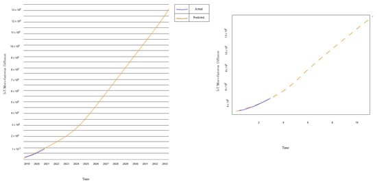 The adoption and repurchase of the SFOJ of HS200919 are crucial for sustaining the functionality of SSFs in citriculture societies [,]. Initially, the Bass diffusion model was applied solely to repeat purchases of durable products, however, it has recently been extended to capture repeat purchases of perishable products as well []. The Frank Bass model was employed to forecast the diffusion rate of HS200919 sales and IoT micro-factories []. A comparison of similar products is often used to forecast the sales of new products and services within the same market context and potential []. For SFOJ, orange juice is utilised to evaluate the forecast sales. Conducting predictive studies of SFOJ before implementation is essential for making informed long-term investments [].