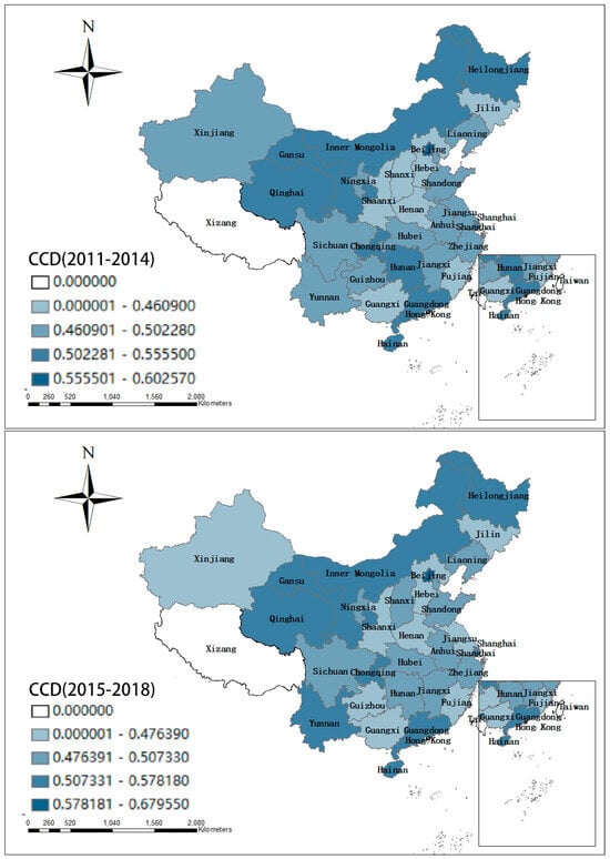 The spatial and temporal evolution of CCD highlights the impact of regional differences and policy interventions.