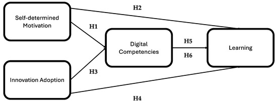 According to Hair et al. [74], a partial mediation of digital competence is observed in the relationship between innovation adoption and learning, confirming hypothesis H6.