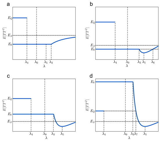 Now we investigate the relation between and based on the three cases. Note that from Equation (5), the expected total travel time, , is a quadratic function of under , and reaches a minimum value when