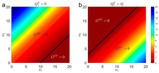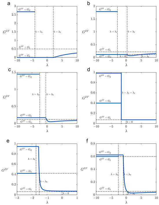 The boundary conditions for the seven possible situations are shown in Table 5. One can see that the existence conditions of situation (vi) and (v) are mutually exclusive. In other words, with other parameters fixed, when increases from to +, while situations (i)–(iv) and (vii) can always be observed, either situation (v) or situation (vi) can emerge.