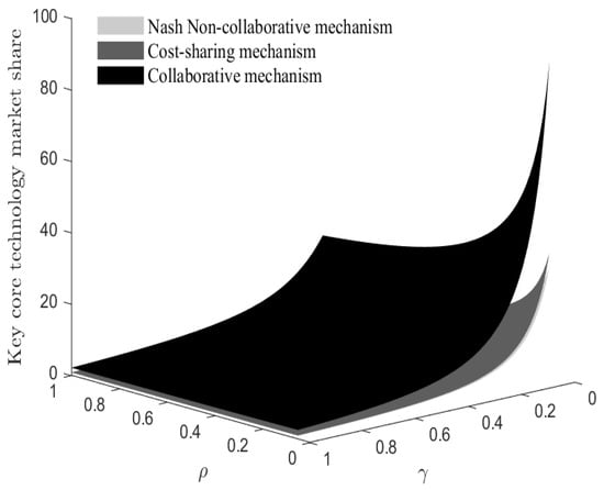 The results of the comparison of the R&D level and market share of key core technology within the system under the three mechanisms are as follows: