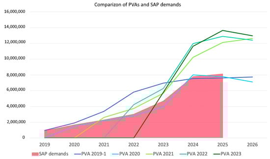 To determine whether the discrepancy between forecasted volumes and actual demand was an isolated case or a recurring pattern, a comparative study was conducted of between the PVAs from 2019 to 2023 and actual sales data recorded in the Systems Applications and Products (SAP) system (Figure 2).