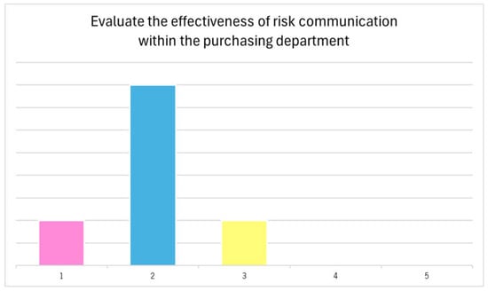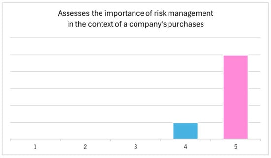 Following the previous question, the importance attributed by the department to risk management practices in the context of the company purchases was also assessed (Figure 5). Five out of six participants attributed maximum importance to this topic, which, together with the analysis of the previous question, suggests that the team would be willing to receive additional training on risk management, in order to increase the solid knowledge base in the area, allowing to mitigate existing difficulties in the department’s decision-making tasks.