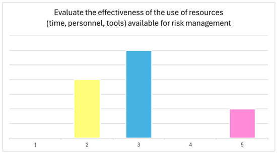 In Figure 6, the effectiveness of the use of resources available for risk management was subjectively assessed, according to the participants’ opinions. Only one person considers that there is effective use of resources, while five members consider that resources are not used so effectively.