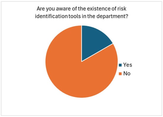 Regarding the question “Are you aware of the existence of risk identification tools in the department?”, by observing Figure 7, it is possible to see that only one person in the department is aware of these tools.