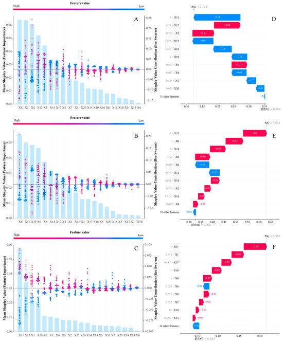 where represents the Shapley value of , indicating the contribution of feature to the final predicted value, in sample . When holds, this suggests that all influencing factors collectively drive the contraction (or expansion) of the urban real estate market. The Shapley value can be calculated using Equation (12), as follows: