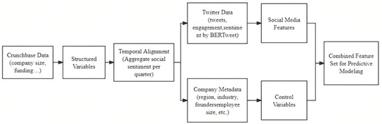 The data used in this study were obtained from the Crunchbase database and the tweets posted on companies’ Twitter accounts. Crunchbase provides key data about startups, such as company size, number of employees, funding history, and technology usage. Meanwhile, Twitter tweets reflect online news related to the companies as well as their social media interactions and public sentiment feedback, capturing public opinions and attitudes toward startups.