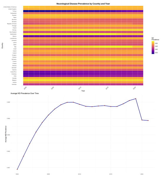 In the study, the level of ND prevalence in OECD countries between 2000 and 2021 and the average ND prevalence trends over time are shown in Figure 1.