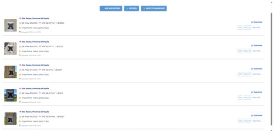 In particular, we aim to extend these functionalities on a project, named “Building ID Card”, that Univesity of L’Aquila is undertaking to map all of its buildings in terms of structural security, projects documents, history and restoration works performed. Preliminary information on the buildings is available at this link: https://www.univaq.it/section.php?id=2211 (accessed on 22 May 2025).