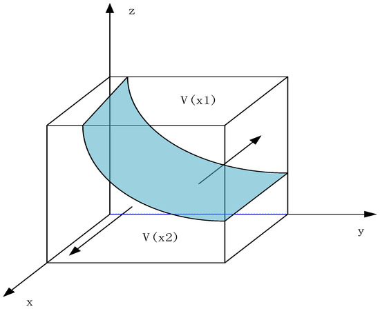 According to the principles of stability in equations, the condition for the decision-making probability of digital platform enterprises to remain stable is and . Consequently, the stability strategies of digital platform enterprises should be considered based on the values of . Thus, let be defined such that when , we obtain . By differentiating , we find that , indicating that is an increasing function with respect to . When , , leading to and . In this scenario, represents an evolutionarily stable strategy, signifying that active cooperative governance is the evolutionarily stable strategy for digital platform enterprises. Conversely, when , , resulting in and , where denotes an evolutionarily stable strategy, indicating that passive cooperative governance is the evolutionarily stable strategy for digital platform enterprises. At this juncture, the evolutionary game trajectory of collaborative governance among digital platform enterprises is illustrated in Figure 3.