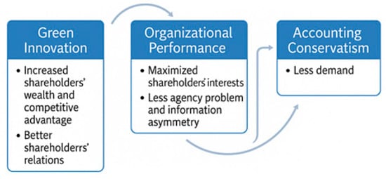 The main argument in terms of the potential relationship between GI and accounting conservatism heavily relies on stakeholder theory. According to this theory, GI will have a positive impact on stakeholders’ wealth because it prioritizes stakeholders’ interest and enhances the sustainable operations desired by stakeholders [38]. More precisely, GI captures the companies’ capabilities in terms of developing new products and technologies to mitigate environmentally related risks, capabilities that are highly valued in the current business environment. Meeting environmental needs helps firms not only gain competitive advantages [10], but also create value for stakeholders [11] by fulfilling stakeholders’ interests.