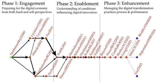 - Enablement Phase—research in this phase focuses on identifying and understanding the structural and contextual conditions that facilitate digital innovation, including organizational configurations, platform ecosystems, and strategic alignment.