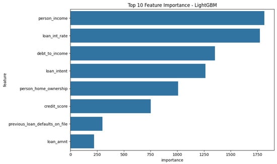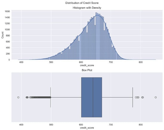 The dataset used in this study is a synthetic version inspired by the original Credit Risk dataset on Kaggle (available at https://www.kaggle.com/datasets/taweilo/loan-approval-classification-data (accessed on 11 November 2024)) and enriched with additional variables based on Financial Risk for Loan Approval data. SMOTENC was used to simulate new data points to enlarge the instances. The dataset is structured for both categorical and continuous features. It contains customer and loan-related features that are relevant to predicting loan defaults. The selected input variables for the models, as listed by the data provider, include ‘person_income’ (annual income), ‘person_home_ownership’ (e.g., RENT, OWN, MORTGAGE), ‘loan_amnt’ (loan amount requested), ‘loan_intent’ (purpose of the loan), ‘loan_int_rate’ (interest rate of the loan), ‘credit_score’ (borrower’s credit score), ‘previous_loan_defaults_on_file’ (binary indicator of previous defaults), and ‘debt_to_income’ (ratio of debt to income). An initial analysis was performed to assess the correlation between these variables and the loan default status, ensuring their relevance for the prediction task. Key features include demographic information (e.g., income, homeownership, age), financial metrics (e.g., credit score, loan amount, interest rate), and historical loan behavior (e.g., previous defaults, debt-to-income ratio). To ensure a robust analysis, the dataset is preprocessed and split into training and testing subsets using stratified sampling to preserve the class distribution. The dataset contains a mix of numerical and categorical features, each providing distinct information about the borrower and the loan. A comprehensive breakdown of the key variables used for modeling is as follows: