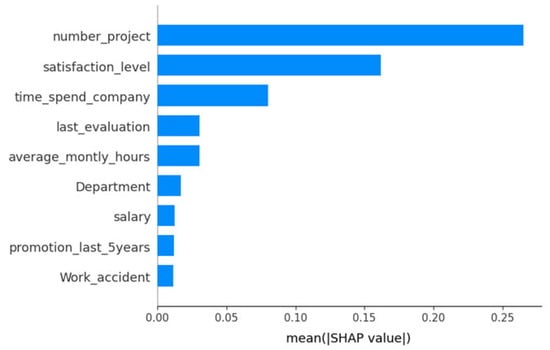 In this step, the average effect of each feature on the model is measured by taking the mean of the absolute values of all individual contributions obtained from the SHAP analysis. This measure is commonly used to create a feature importance ranking and provides decision support in managerial fields such as human resources. Therefore, the equation to be used here is as follows:
