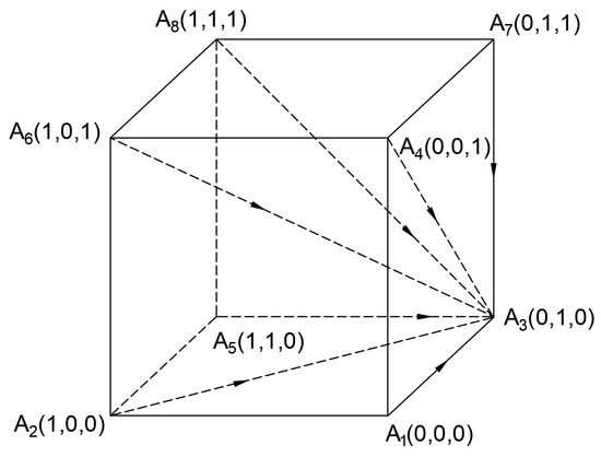 The Jacobian matrix calculates the eigenroots on the essential vertices A1 to A8 to explore the system’s stability at different equilibrium points. Analyzing feature roots is very important to judge the system’s stability. Only when all the calculated eigenroots are negative can we conclude that the system is stable at that point. These points are called stable evolutionary equilibrium points, and the corresponding strategy combinations are regarded as evolutionarily stable strategies. Take point A1 (0,0,0) as an example; find the characteristic equation =0 of the system, where