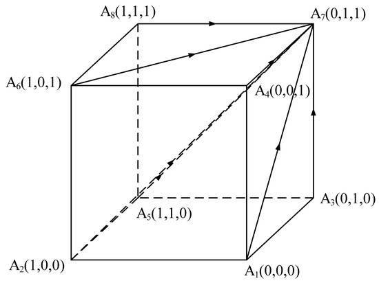 (2) Discussion 2. If and , when the profits obtained by logistics enterprises without implementing low-carbon strategies are higher than those obtained by adopting the low-carbon strategy, and this difference exceeds the total amount of financial support, taxation and sewage charges provided by the government for low-carbon technology research and development If we also take into account that the additional benefits added by the government to consumers through the construction of relevant infrastructure exceeds the cost borne by consumers, then the whole evolutionary game process will be more likely to tend to the equilibrium point A7 (0,1,1). This indicates that in this case, the combination of strategies that logistics enterprises choose not to adopt the low-carbon strategy, the government taking active regulatory measures, and consumers choosing to consume will constitute a stable evolutionary strategy. This is shown in the phase diagram of the evolutionary game shown in Figure 3.